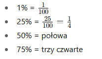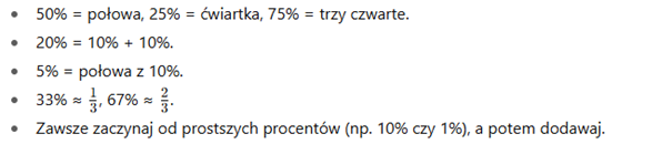 👉 Trik: Zamieniaj procenty na ułamki lub liczby dziesiętne: